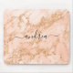 Rose Gold Glitzer Marmor Maus Pad mit schwarzem Skriptnamen.