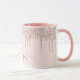Eine mit Monogramm Tasse, mädchenhaft und trendig. Ein femininer, rosafarbener Hintergrund mit Imitaten Rose vergoldeten Glitzer-Tropfen. Personalisieren und fügen Sie einen Namen und einen Monogrammbuchstaben hinzu. Graue Buchstaben. Der Name wird mit einem modernen handgeschriebenen Stilskript mit Swashes geschrieben. Um die Swashes behalten, löschen Sie nur den Beispielnamen, verlass die Leerzeichen oder Emoji's vor und nach dem Namen.