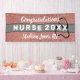 Überraschen Sie Ihre Krankenschwester mit einem großen modernen Banner zu sagen Glückwünsche! Dieses Banner ist mit einer trendigen rosa Rosa Rosa Gold Imitat Hintergrund, grauen horizontalen Streifen und schwarzen Stethoskop Silhouette in der Mitte entworfen. "Herzlichen Glückwunsch Krankenschwester" ist in fett weiß gebürstetes Skript mit Blockschrift gemischt. Abschluss Jahr und Krankenschwester werden mit einem Klick auf die Option Vorlage personalisieren vollständig eingegeben.
