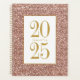 Chic Rose Gold Pink Glitzer funkelndes Design auf einem neuen eleganten und klassisch luxuriösen undated Planer für 2025 mit individuelle Name oder Planer Thema Titel in einem quadratischen Rand auf der Vorderseite.