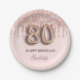 Elegant, klassisch, glamourös und mädchenhaft für eine 80. Geburtstagsfeier. Rosa Untergrund. Dekoriert mit Rose vergoldeten Imitaten Glitzer Tropfen, Farbe tropfend aussehen. Personalisieren und einen Namen hinzufügen. Mit dem Text: Happy Birthday. Der Name ist mit einem modernen, dunklen Rose gefärbten Handschrift geschrieben. Nummer 80 wird mit einem Schriftart im Ballonstil geschrieben.