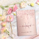Ein Imitat Rose gold metallische Hintergrund mit eleganten Rose Gold und rosa Imitat Glitzer Tropfen, Farbe Tropfen Aussehen. Personalisieren und fügen Sie einen Namen, einen Monogrammbuchstaben und einen Titel hinzu. Der Name ist bordeauxrot geschrieben mit einem großen, modernen, handgeschriebenen Stil-Skript mit Swashes. Ideal für Schule, Arbeit oder als Geheimtagebuch. Um die Swashes behalten, löschen Sie nur den Beispielnamen, verlass die Leerzeichen oder Emoji's vor und nach dem Namen.