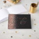 Dieses elegante Gästebuch mit einer Rose Gold Imitat Glitzer Rahmen auf einem schwarzen Hintergrund. Anpassen Sie den Text aus Goldfolie in der richtigen Rose, mit den Namen des Ehepaares in Kalligrafie in der Handschrift über einen großen grauen Ampersand. Fügen Sie dem Vorder- und Rückgrat einen zusätzlichen Text Ihrer Wahl hinzu.