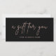 Eine schlichte und elegante Rose Gold Glitzer Script Geschenkgutschein auf einem schwarzen Hintergrund. Dieses schicke Design mit den Buchstaben "Ein Geschenk für Sie" in Rose Gold Glitzer Script ist perfekt für Ihre Marke und Geschäft und macht ein wunderbares Geschenk für Ihre treuen oder neuen Kunden. Sie können den Hintergrund und die Farbe des Schriftartes ändern, um Ihre eigenen Markenfarben Anzug.