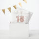 Feiern Sie einen besonderen Sweet 16 mit dieser eleganten Rose Gold Glitzer Drehbuch Geburtstag Gunst Tasche. Dieses Gastgeschenk mit einem kühnen Glitzer "16"-Design mit einem individuellen Namen in einem stilvollen Drehbuch, ist ideal, um den Gästen ein besonderes Dankeschön zu geben. Diese trendige Begehrensasche ist ein unvergessliches Statement für die Geburtstagsfeier des Mädchens.