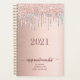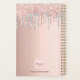 Ein Imitat Rose goldener Hintergrund mit eleganter Rose Gold und Imitate silber Glitzer Tropfen, Farbe Tropfen aussehen. Vorlage für ein Jahr. Personalisieren und fügen Sie einen Titel, Geschäftsnamen, Kontaktinformationen auf der Vorderseite. Der Buchtitel ist in dunklem Rose Gold geschrieben, mit einem großen, modernen Handschrift-Stift mit Swashes. Um die Swashes behalten, löschen Sie nur den Beispielnamen, verlass die Leerzeichen oder Emoji's vor und nach dem Namen. Ein Terminplaner für Makeup-Künstler, Haar- und Schönheitssalons.