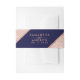 Rose Gold Typografie auf individualisierbaren marineblauen Glitzer-Farbblock mit blauer Rose und Imitate Rose goldene geometrische Streifen chic Bauchband Hochzeit , perfekt für elegante, Strand Hochzeit