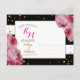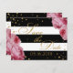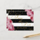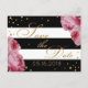 Rosa Rosen über schwarz-weißem Hintergrund mit goldenem Glitzer-Effekt Konfetti modernen floralen Save the Date Postkarte.