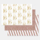 Ein Set von süßen 16 Geburtstagsparty Packpapier mit trendigen und modernen Rose Gold Glitzer und ein Blatt personalisiert mit dem Namen der Geburtstagsmädchen sechzehn. Geben Sie den Namen ein, und es wird das sich wiederholende Muster von großem Gold 16 und "Happy Birthday" Text.