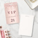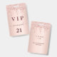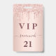 Ein modernes, stilvolles und glamouröses Abzeichen für eine 21. Geburtstagsfeier (oder jedes Alter). Ein Imitat Rose gold metallische Hintergrund mit einem eleganten Imitat Rose Gold Glitzer Tropfen, Farbe Tropfen aussehen. Der Name ist mit einer modernen dunklen Rose goldfarbenen handgeschriebenen Stil-Skript mit Swashes geschrieben. Mit dem Text: VIP Nummer 21 ist in goldener Farbe geschrieben. Um die Swashes behalten, löschen Sie nur den Beispielnamen, verlass die Leerzeichen oder Emoji's vor und nach dem Namen.