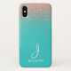 Rose Gold Foil und Aquamarin Girly Glitzer Confetti Muster auf einem eleganten Mit Monogramm Fall. Diese Rose Gold - Blush Pink und Aqua Blue Gehäuse können auf Ihren ursprünglichen und vollen Namen angepasst werden. Bitte kontaktieren Sie den Designer, um passende Artikel zu erhalten.