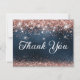 Erstellen Sie Ihre eigenen eleganten Dankeschön Sie Grußkarten mit diesem modernen mädchenhaften Imitat funkelnd Rose Gold Glitzer und funkelnd Rose Gold Diamant Kristall Konfetti gegen eine marineblau blauen Folie metallische Ober oder Gradienten Hintergrund. Dieses Imitat funkelnd Rose Gold Marineblau Metallic ist ideal für individuelle Geschenke.