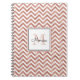Personalisiertes Wendelheft mit Imitaten Rose Gold Glitzer Zickzack Muster mit individuelle Name in schwarzem Handschrift Schriftart und Monogramm in passender Rose Goldschattierung in weißem Quadrat Rahmen.