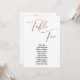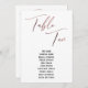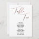 Dieses schlichte, elegante Design zeichnet sich durch "Table Ten" aus, die in einem modernen Schriftart in Handschrift dargestellt und mit einem goldenen Imitat-Metal-Rose-Effekt verziert sind. Der Schriftart für Namen kann auf Wunsch geändert werden. Wie auch die Hintergrundfarbe. Die Details werden sowohl vorne als auch hinten angezeigt. 151 //