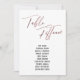 Dieses schlichte, elegante Design zeichnet sich durch die "Table Fifteen" aus, die in einem modernen Schriftart in Handschrift dargestellt und mit einem goldenen Imitat-Metal-Rose-Effekt verziert sind. Der Schriftart für Namen kann auf Wunsch geändert werden. Wie auch die Hintergrundfarbe. Die Details werden sowohl vorne als auch hinten angezeigt. 151 //