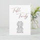 Dieses schlichte, elegante Design mit "Table Twenty", gerendert in einem modernen Schriftart, verziert mit einem Imitat-Metal-Rose Goldeffekt. Der Schriftart für Namen kann auf Wunsch geändert werden. Wie auch die Hintergrundfarbe. Die Details werden sowohl vorne als auch hinten angezeigt. 151 //