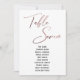 Dieses schlichte, elegante Design zeichnet sich durch den "Table Seven" aus, der in einem modernen Schriftart in Handschrift dargestellt wird und mit einem goldenen Imitat-Metal-Rose-Effekt geschmückt ist. Der Schriftart für Namen kann auf Wunsch geändert werden. Wie auch die Hintergrundfarbe. Die Details werden sowohl vorne als auch hinten angezeigt. 151 //