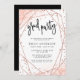 Moderne Rose Gold und schwarze Graduiertenparty Einladung Vorlage. Dieses Design zeichnet sich durch einen Glitzer-Rahmen und einen geometrischen Rahmen mit weichen Aquarellecken aus. Designs sind flache gedruckte Illustrationen/Grafiken - NICHT AKTUELLER GLITZER ODER FOIL.