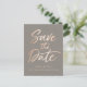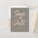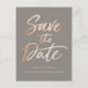 Diese Save the Date Postkarten verfügen über einen eleganten Script-Schriftart in einer Imitat-Folie sehen Rose Gold und Graufarben Palette.