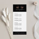Das elegante Design der Rack-Karte zeigt Ihre Services, Preislisten oder Geschäftsinformationen schön an. Das Design bietet eine Rose von Imitaten mit goldenen Wimpern und Augenbrauen auf schwarzem Hintergrund, mit Ihrem Namen und/oder Firmennamen in weißen handgeschriebenen Schriftzeichen. Enthält vier individuell anpassbare Überschriften und Textfelder sowie Platz für Ihre Kontaktinformationen in Ihrem Unternehmen ganz unten. Ideal für Salons, Make-up Künstler, Ästhetiker, Brow und Lash Spezialisten. Um das Layout anzupassen, geben Sie Ihren Text ein und ändern Sie mithilfe der Funktion Anpassen die Positionierung und die Größe des Schriftartes.