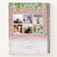 Rose Gold und weißes Marmor Notebook mit rosa Glitzer-Overlay, hübsche Abbildung von Blumentropfen und Foto Collage mit drei Vorderbildern und sechs Hinterbildern. Einfach mit Namen und Lieblingsbildern personalisieren.