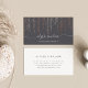 Modernes Design mit einem reichhaltigen, mittelgrauen Hintergrund und senkrechten Litzen von Imitaten Rose goldgeflochtene Folienschilder von oben kaskadiert. Fügen Sie der Vorderseite zwei Zeilen benutzerdefinierten Text hinzu, mit Ihrem Namen oder Geschäftsnamen in schicken handschriftlichen Skripten, und passen Sie den Rücken mit Ihren vollständigen Kontaktdaten an.