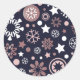 Rose Gold Metallschneeflocken, Wintersaison Runder Aufkleber