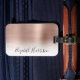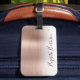 Eleganter mit Monogramm Gepäckanhänger mit einer ombre gebürsteten Rose goldgelben Hintergrund. Personalisieren Sie mit Ihrem Namen in einem zeitgenössischen Skript.