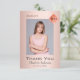 Ein Abschluss Foto danke Ihnen Karte. Eine goldene Hintergrundfarbe der Rose. Auf der Vorderseite: Personalisieren und fügen Sie ein vertikales Foto, einen Namen, ein Jahr und einen Schulnamen. Mit dem Text: Graduate und Danke. Die Einrichtung ist modern und abstrakt mit dem Jahr im Inneren. Zurück: Fügen Sie Ihr zweites Foto, Ihr Dankeschön Notiz und Name. Der Name ist mit einem modernen handgeschriebenen Stilskript geschrieben.