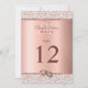 Diese trendigen glamourösen Rose Gold Glitzer große Tischnummer Karten sind perfekt für Ihre elegante Hochzeitstisch Dekoration. Der metallische Hintergrund der Imitate ist oben und unten mit Damast gerahmt und mit Hochzeitsringen verziert.