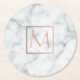 Rose Gold Monogramm auf weißem Marmorstein Runder Pappuntersetzer