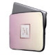 Dieser Laptop-Ärmel verfügt über eine Rose Gold Monogramm in einem Marmorrahmen auf einem gürtelrosa bis Vanille-Farbverlauf Hintergrund.