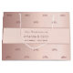 Elegant und zeitlos, mit dem Monogramm als Muster. Ein Imitat Rose gold metallisch aussehend Hintergrund. Personalisieren Sie Ihre Monogrammbriefe und fügen Sie sie hinzu. Ihr Familienname ist in der Mitte mit einem Hauptstadt-Brief. Fügen Sie Ihre Namen und das Hochzeitdatum hinzu. Dunkle Rose Goldtext.