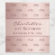 Für eine glamouröse 21. Geburtstagsparty (oder jedes Alter). Ein Imitat Rose gold metallisch aussehend Hintergrund. Personalisieren Sie Ihre Monogrammbriefe, Ihren Namen, Ihr Alter 21 und ein Datum. Dunkle Rose Goldtext. Der Name ist mit einem modernen handgeschriebenen Stilskript geschrieben. Das Monogramm als Hintergrundmuster