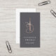 Elegante vertikale Visitenkarten für nahtlose, modische Designer, Stylist, Schneider und vieles mehr bieten eine Nadel- und Thread-Illustration in Imitate Rose Goldfolie auf einem raffinierten, mittelgrauen Hintergrund mit zwei Textzeilen in Weiß. Passen Sie die Rückseite mit den vollständigen Kontaktdaten an, die unter einer kleineren Nadelschutzzeichnung angezeigt werden.