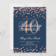 Rose Gold Navy 40. Geburtstag Glitzer Confetti Einladung