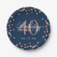 Rose Gold Navy 40. Geburtstag Glitzer Confetti Pappteller