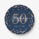 Rose Gold Navy 50. Geburtstag Glitzer Confetti Pappteller