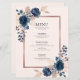 Rose Gold Navy Blue Dusty Pink Floral Wedding Menükarte