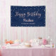 Dieses stilvolle Geburtstagsbannerdesign mit Rose Gold "Happy Birthday" Typografie auf marineblau Hintergrund. Sie können den Namen und den Jahrestext und die Hintergrundfarbe personalisieren. Mehr Party und Dekorgegenstände sind in meinem Shop BaraBomDesign erhältlich. Danke!