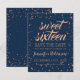 Elegant & modern "Sweet 16 ( Sechzehn ) Geburtstagsparty Save the Date" Design mit Rose Gold & Navy Blue Glitzer Sparkle Confetti Dots Motiv, und individuelle Name und Details Text. Einfach zu bedienen und leicht zu personalisieren. Bestelle noch heute!