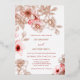 Diese elegante florale Hochzeitseinladung zeigt echte Rose-Gold-Folie-Linienkunst-Blumen und rosa Kirschblüten auf weißem Hintergrund. Ihr Foto auf der Rückseite