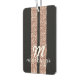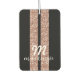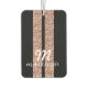 Spaß und trendige Rose Gold rosa Glitzer funkelnd Rennstreifen auf einem Autoluftkühler mit einer personalisierten Monogramm und Name für den mädchenhaften Automobil-Enthusiast hat einige Retro-Vibes mit einem modernen Look.