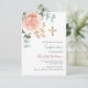 Rose Gold und Rosa Blumen, Eukalyptusgrün und goldenes Kreuz. Personalisieren und fügen Sie einen Namen und Details.