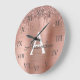 Rose Gold - Rosa Rosa Glitzer Metal Monogramm Name Große Wanduhr