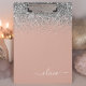 Rose Gold Rosa Rosa Silberne Glitzer Monogram Girl Klemmbrett