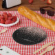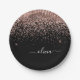 Rose Gold - Rosa Schwarzer Glitzer Monogramm Name Pappteller