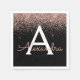 Rose Gold Rosa Schwarzer Glitzer Monogramm Serviette