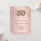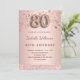 Eine moderne, stilvolle und glamouröse Einladung zu einer 80. Geburtstagsfeier. Eine Rose goldener Farbverlauf mit Rose golden und rosa Sternen. Der Name ist mit einer modernen dunklen Rose goldfarbenen Handschrift geschrieben, die als Stilschrift dient. Personalisieren Sie Ihre Party-Daten und fügen Sie sie hinzu. Nummer 80 wird mit einem Schriftart im Ballonstil geschrieben, Skript.