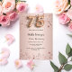 Eine moderne, stilvolle und glamouröse Einladung zu einer 75. Geburtstagsfeier. Eine Rose mit goldenem Hintergrund mit Sternen. Der Name wird mit einem handgeschriebenen Stilskript geschrieben. Personalisieren Sie Ihre Party-Daten und fügen Sie sie hinzu. Nummer 75 wird mit einem Schriftart im Ballonstil geschrieben, Skript.